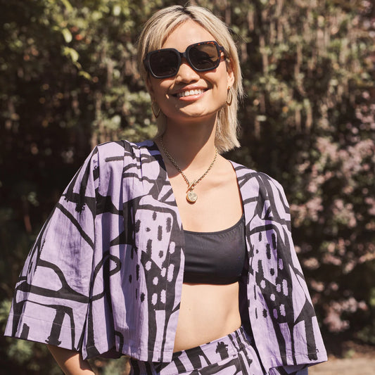 Miss Pompom Lilac Paint Cropped Swing Jacket