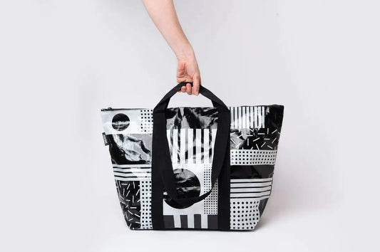 Our bags are crafted from a variety of materials including cotton canvas, recycled plastic, and waterproof fabrics like nylon and polyester.