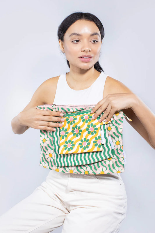Kind Bag Pouches, set of 3 - Wavy Daisy